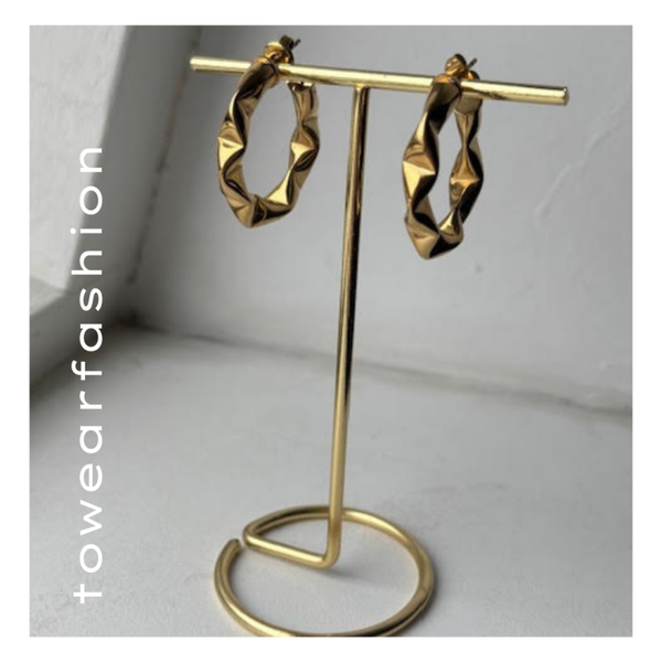 Laat je stijl spreken met deze prachtige goudkleur oorbellen met een verfijnd crinkle-effect. Deze unieke oorbellen combineren elegantie met een moderne twist, dankzij het subtiel geplooide oppervlak dat het licht op een bijzondere manier vangt. Het resultaat is een glanzend spel van reflecties dat bij elke beweging tot leven komt – perfect voor wie op zoek is naar net dat beetje extra.